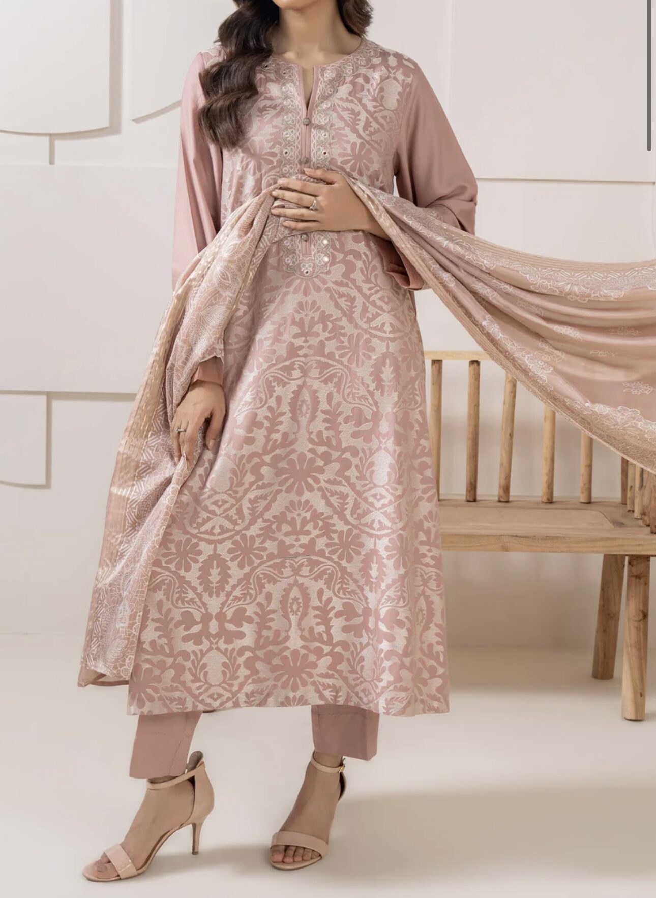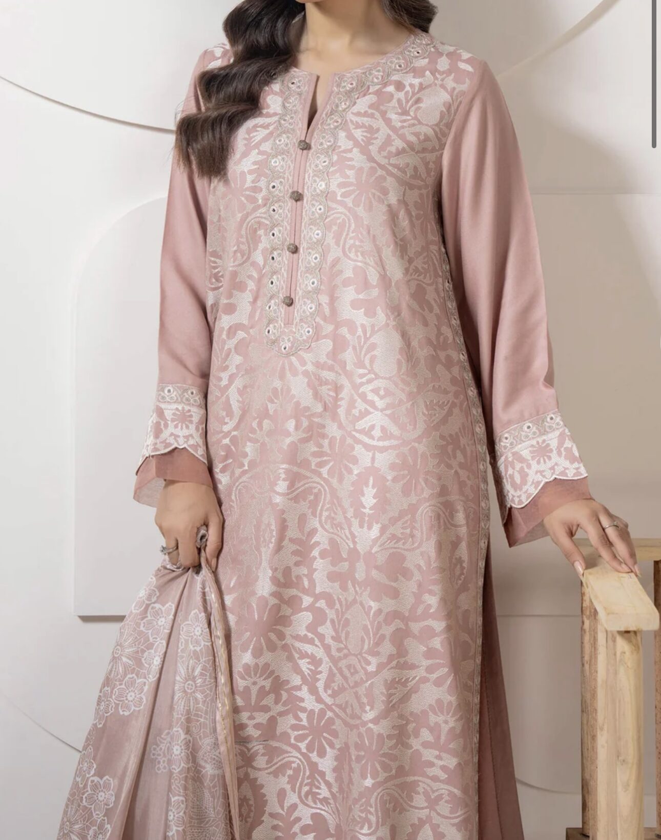 Jacquard Crepe Fabric with beautiful embroidery and mirror work on neck lice